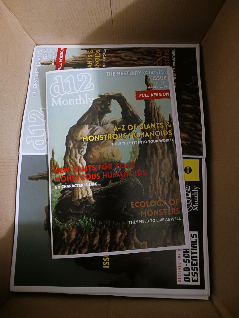 Look what I received today. The printed version of Issue 54 of d12 Monthly. Ready to be sent to Patrons and placed in my shop. #DnD #DungeonsAndDragons #TTRPG